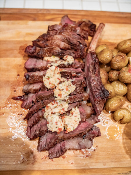 The bison ribeye is cut from the primal section of our South Dakota born and raised bison. Sometimes they come as ribeye steaks, and if you're lucky, sometimes they come as rib steaks with the handle sticking out. Either way, these steak cuts are a nice combination of the satisfying size of a Strip Steak with a more tender, slightly more fatty texture. If you want to impress family for the holidays, try doing it with the one thing everyone has always wanted to try, a South Dakota buffalo ribeye. Do NOT let the grill master over cook these babies!! Salt with pepper and three minutes a side!